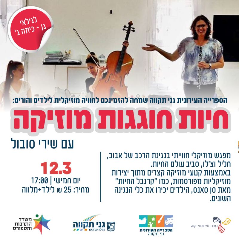 חיות חוגגות מוזיקה – עם שירי סובול - הספרייה העירונית גני תקווה